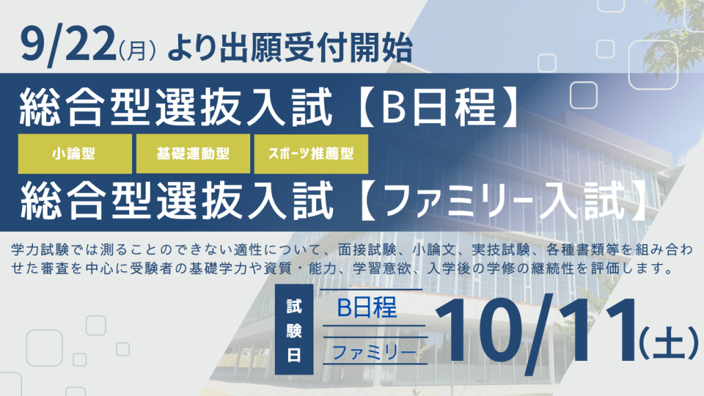 9月22日(月)より総合型選抜入試(B日程/ファミリー入試)の出願受付を開始