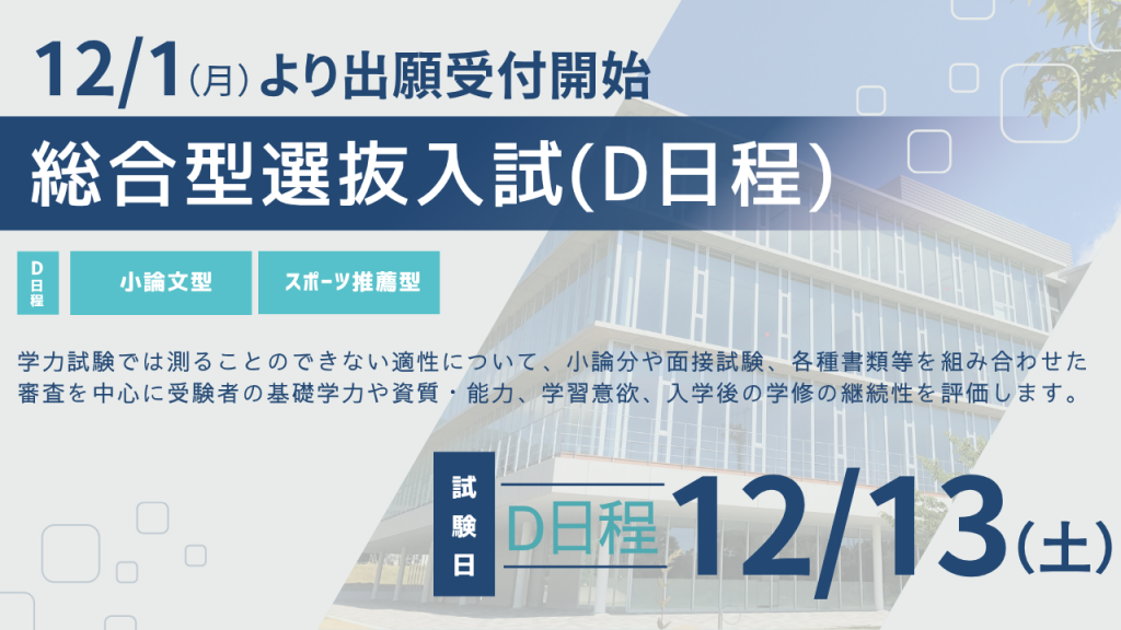 12月1日(月)より総合型選抜入試(D日程)の出願受付を開始