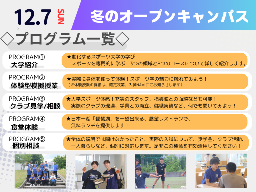 12月7日(日)今年度 “最後” のびわこ成蹊スポーツ大学「冬のオープンキャンパス」を開催します!